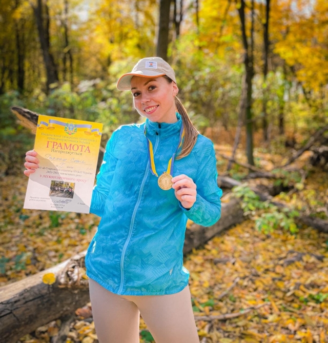 В теплий осінній день 19 жовтня 2021 р. у Національному університету біоресурсів і природокористування України відбувся черговий легкоатлетичний забіг «Золота осінь-2021», участь в якому прийняла студентка магістратури 2-го року навчання факультету захисту рослин, біотехнологій та екології, спеціальності «Захист і карантин рослин», дипломниця кафедри фітопатології ім. акад. В.Ф. Пересипкіна Софія Гармаш. Серед багатьох учасників на дистанції 750 м (біг) наша Софія виборола призове місце. І як у більшості змагань, у яких вона приймає участь – це було І місце.