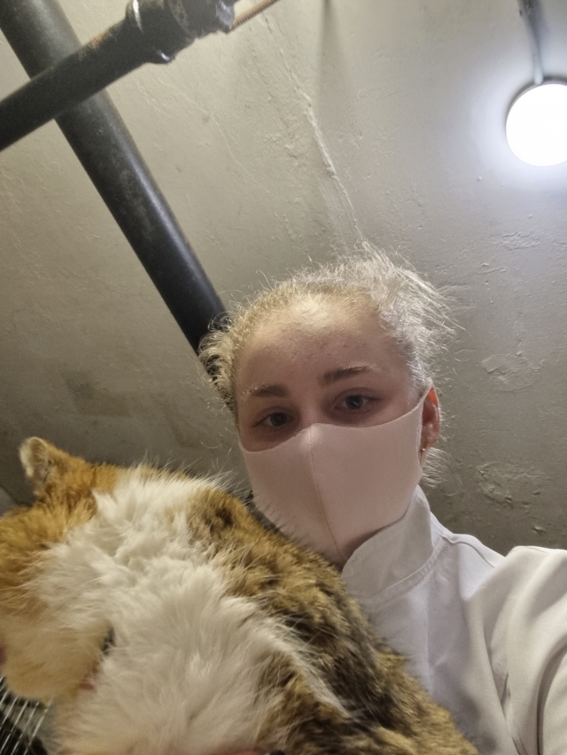 Разом з тим, у таких умовах, твердо вирішила робити все можливе, для допомоги і перемоги України. Знайшла волонтерську організацію (прим. автора: за місцем проживання на Київщині) та працюю по розподілу гуманітарної допомоги, одягу і ліків. Іще допомагаю у будинку людям літнього віку. Також періодично доглядаю за дітьми тимчасово переміщених осіб, які теж пішли працювати та волонтерити. Загалом, весь вільний час розподілений. Складно. Стараюся встигати виконувати завдання на платформі навчальних курсів дистанційно на е-льорн, хоча як і кожному зараз, це не просто. Для мене важливо не втратити можливість навчатися і навчатися успішно та отримати диплом за спеціальністю Лікаря Ветеринарної Медицини!
