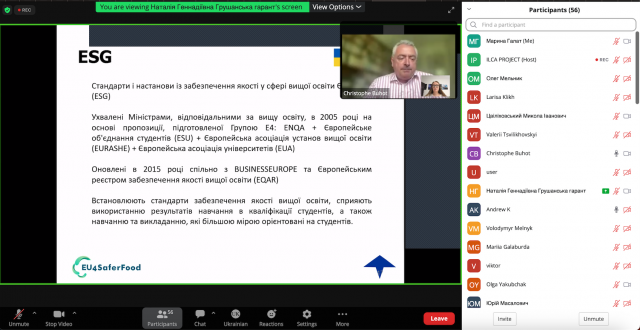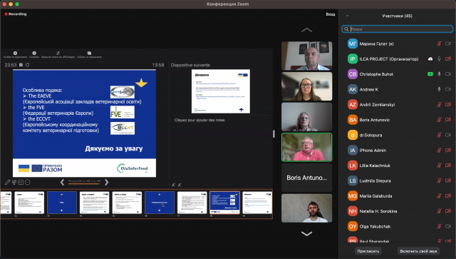 З вітальним словом до учасників передакредитаційного заходу, який відбувався в онлайн форматі, звернулись керівник міжнародного проєкту «Покращення законодавства, контролю безпечності харчових продуктів, здоров’я і благополуччя тварин в Україні» Боріс Антонович, який наголосив на тому що факультет ветеринарної медицини НУБіП України відповідає необхідним вимогам і має отримати відповідну акредитацію, а також декан факультету ветеринарної медицини, академік НААН України Микола Цвіліховський, який зазначив, що отримання акредитації факультетом у Європейській асоціації закладів ветеринарної освіти є важливим питанням сьогодення факультету.