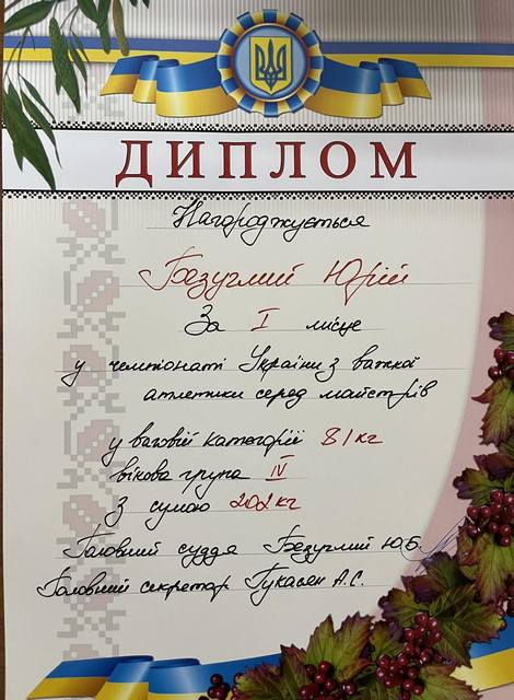 Юрій Безуглий, викладач кафедри фізичного виховання, чемпіон України з важкої атлетики серед майстрів 2021 року