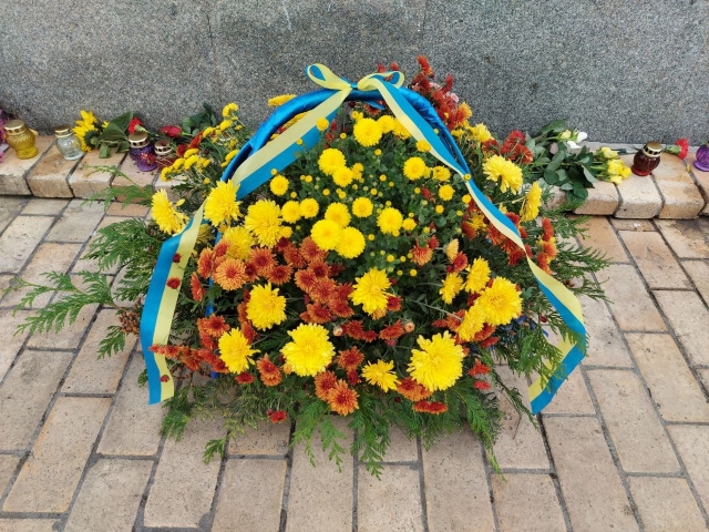 За дорученням ректора НУБіП України Станіслава Миколайовича Ніколаєнка делегація від ректорату прийняла також участь в покладанні корзини квітів до Стіни Пам`яті, на Софіївській площі, білі Свято-Михайловського златоверхого монастиря.