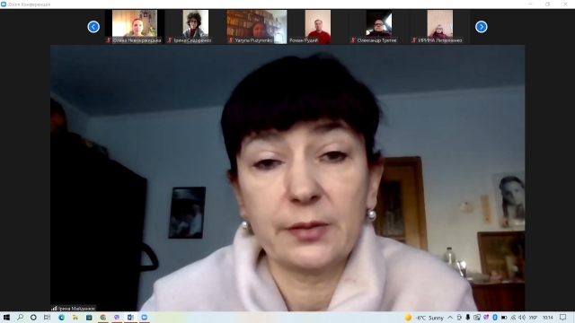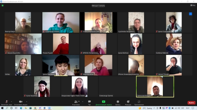 У нелегкий час військового стану в Україні життя і робота на кафедрі культурології продовжуються, і 11 березня в онлайн-форматі відбулося засідання кафедри. Бачити одне одного, спілкуватися, будувати плани, незважаючи ні на що, - зараз надзвичайно трепетно. « Це були найсвітліші хвилини за останні два тижні», - сказала на засіданні доцент кафедри Ірина Віталіївна Войтюк.