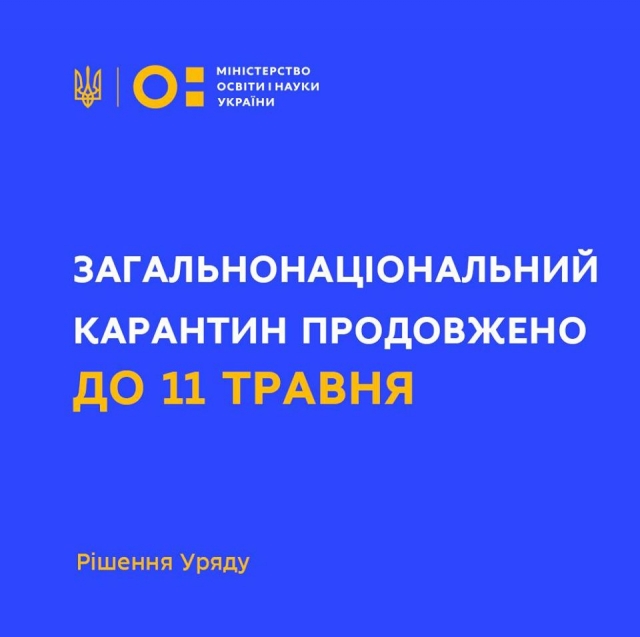 Загальнонаціональний карантин продовжено рішенням Уряду України до 11 травня 2020 року. Заклади освіти продовжують свою роботу із використанням дистанційних технологій навчання.