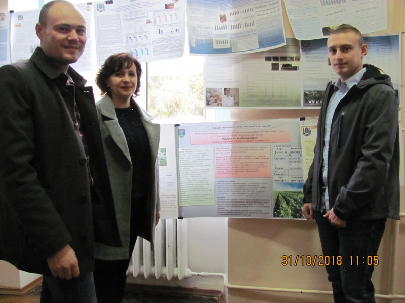 Магістри Щигорцова Наталія та Стукало Артем разом з керівником магістерських робіт І.В. Свистуновою представили результати досліджень щодо підвищення продуктивності культур, що насичують весняно-літню ланку зеленого конвеєра.