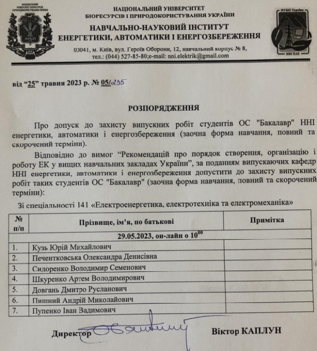 Захист дипломних робіт (проєктів) бакалавра заочної форми навчання ННІ енергетики, автоматики і енергозбереження