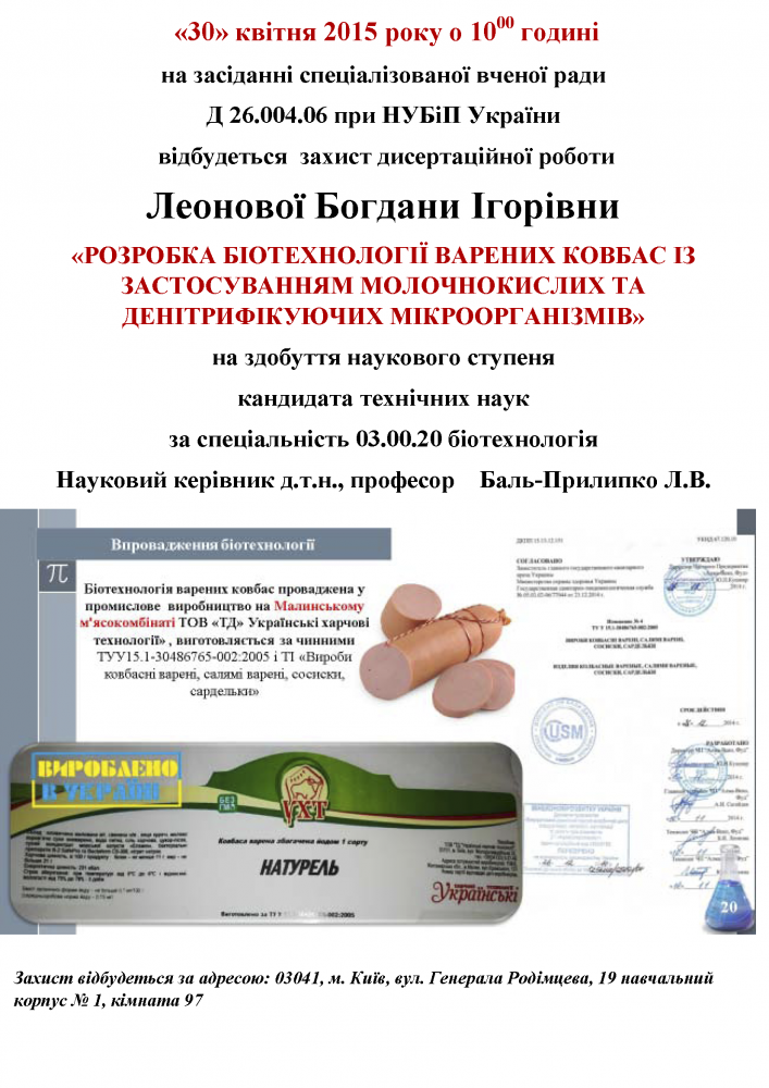 Захист дисертаційної роботи Леонової Богдани Ігорівни
