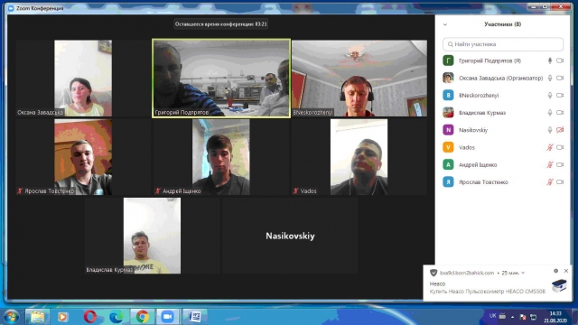 21.08.20 на кафедрі технології зберігання, переробки та стандартизації продукції рослинництва ім. проф. Б.В. Лесика із застосуванням програми дистанційної комунікації Zoom успішно пройшов захист звітів із виробничої практики магістрів 2 року навчання. Студенти за результатами проведеної роботи представили керівнику практики проф. Подпрятову Г.І. свої звіти. Викладачі кафедри, разом із завідувачем проф. Подпрятовим Г.І. високо оцінили результати, які були представлено. У процесі жвавої дискусії та обговорення магістрам надали зауваження щодо виконаних робіт та поради щодо їх покращення. Завідувач кафедри проф. Подпрятов Г.І. загострив увагу студентів стосовно наявності плагіату у їх магістерських роботах та нагадав, що їм необхідно пройти попередній захист на кафедрі до 10 жовтня 2020 р., а до 20 жовтня 2020 р. уже направити свої роботи для перевірки на академічну доброчесність.