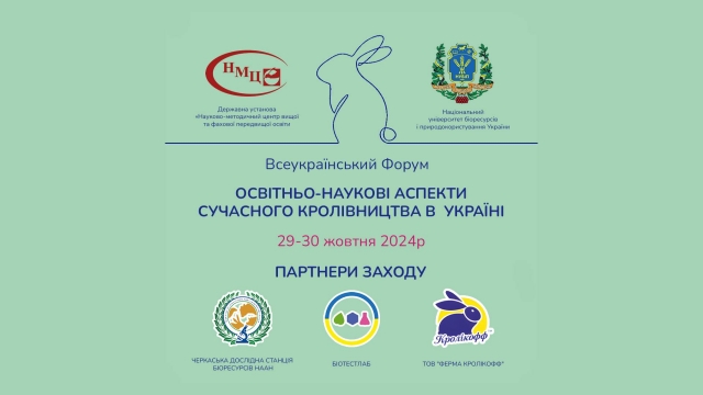 29-30 жовтня 2024 року відбудеться Всеукраїнський форум «Освітньо-наукові аспекти сучасного кролівництва в Україні» на базі Факультет тваринництва та водних біоресурсів НУБіП України НУБІП / NULES