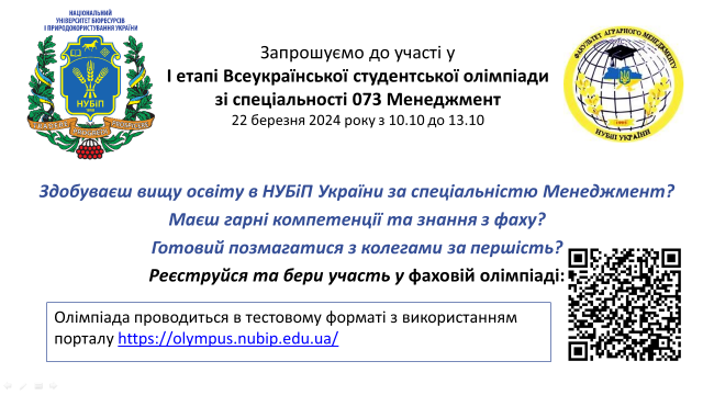 Запрошуємо до участі у І етапі Всеукраїнської студентської олімпіади зі спеціальності 073 Менеджмент