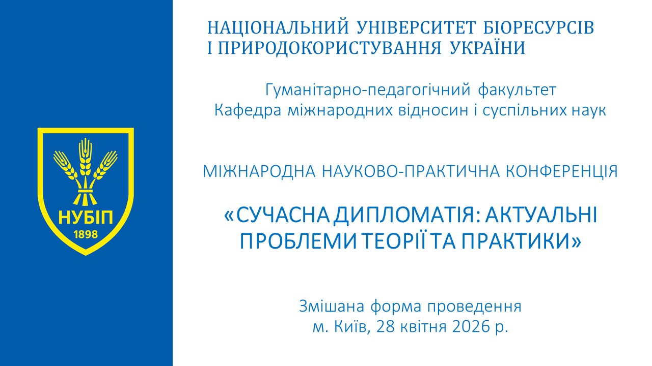 Запрошуємо до участі в Міжнародній науково-практичні конференції «СУЧАСНА ДИПЛОМАТІЯ: АКТУАЛЬНІ ПРОБЛЕМИ ТЕОРІЇ ТА ПРАКТИКИ»