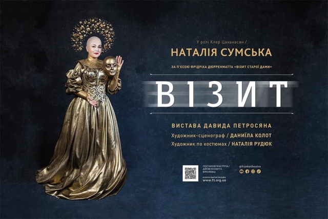 Запрошуємо на культурний захід - виставу «Візит», яка створена режисером-постановником Давидом Петросяном за однією із найвідоміших п'єс класика швейцарської літератури Фрідріха Дюрренматта (1921-1990) «Візит старої дами» (1956).