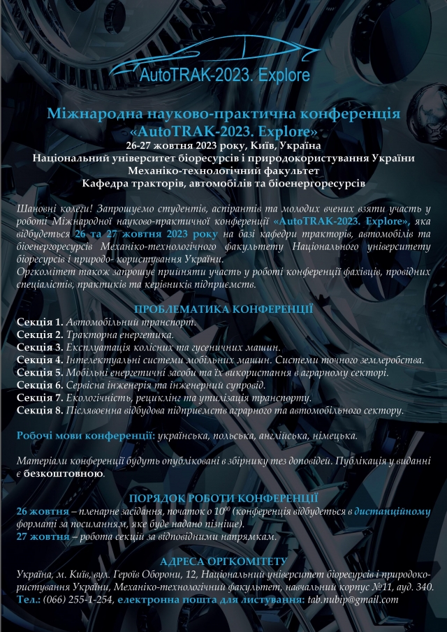 Запрошуємо на міжнародну науково-практичну конференцію «AutoTRAK-2023. Explore» 25 вересня 2023 року 03:00 - 03:00