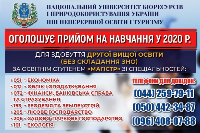 Запрошуємо на навчання для здобуття освітнього ступеня "Магістр" з наданням другої вищої освіти!