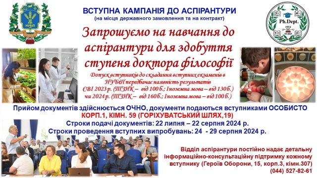Запрошуємо на навчання в аспірантуру НУБіП України