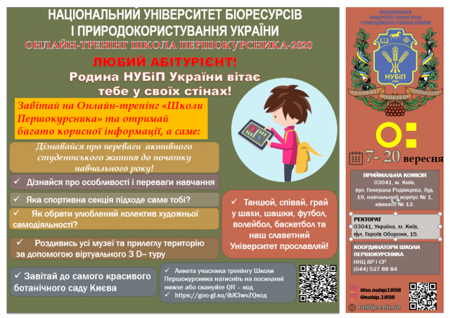 Запрошуємо на онлайн-тренінг «Школа першокурсника-2020»
