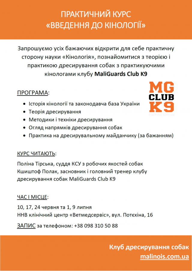 ЗАПРОШУЄМО НА ПРАКТИЧНИЙ КУРС «ВВЕДЕННЯ ДО КІНОЛОГІЇ»