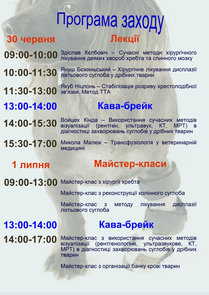 ЗАПРОШУЄМО НА УКРАЇНСЬКО-ПОЛЬСЬКИЙ МАЙСТЕР-КЛАС ДЛЯ ПРАКТИКУЮЧИХ ЛІКАРІВ ВЕТЕРИНАРНОЇ МЕДИЦИНИ З ХІРУРГІЧНОЇ ПАТОЛОГІЇ ДРІБНИХ ТВАРИН