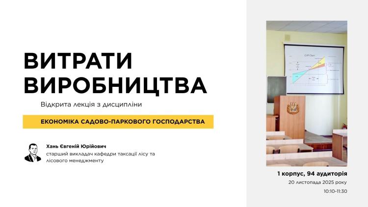 Запрошуємо на відкриту лекцію з навчальної дисципліни: "Економіка садово-паркового господарства"