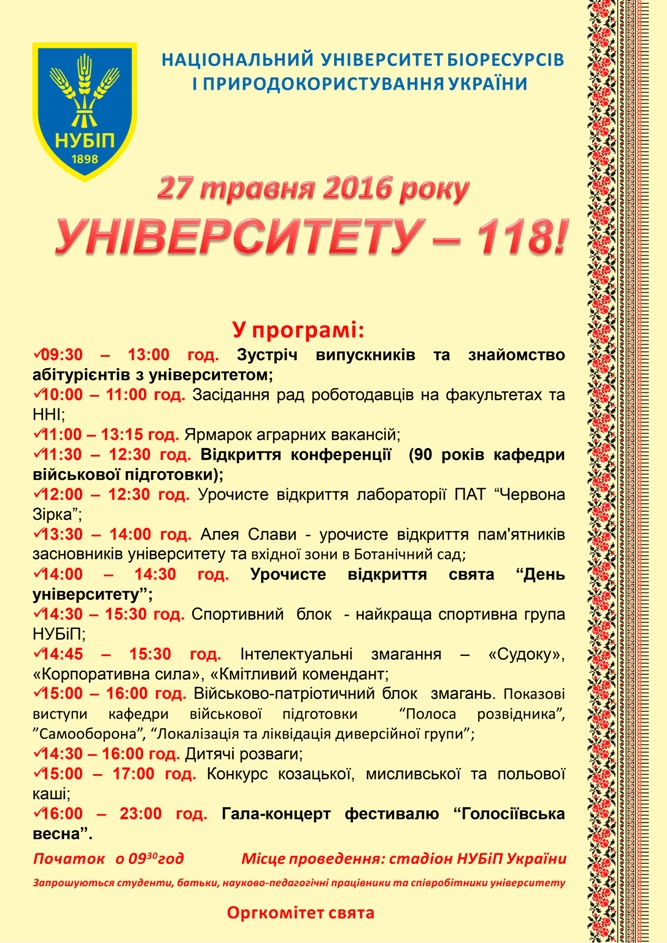 Запрошуємо на відзначення 118-річниці НУБіП України!