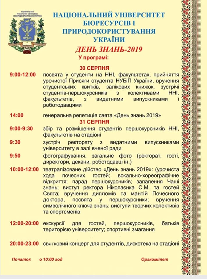 Запрошуємо на загальноуніверситетське Свято, присвячене Дню знань, початку нового навчального року 21 серпня 2019 року 03:00 - 03:00