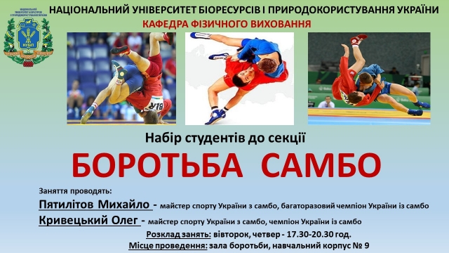 Запрошуємо студентів-першокурсників до занять у секції боротьби самбо 29 вересня 2020 року 03:00 - 03:00