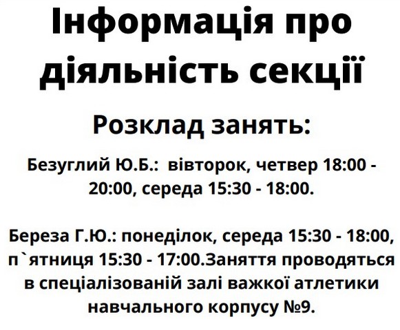 Запрошуємо студентів першокурсників до занять у спортивній секції важкої атлетики 30 вересня 2020 року 03:00 - 03:00