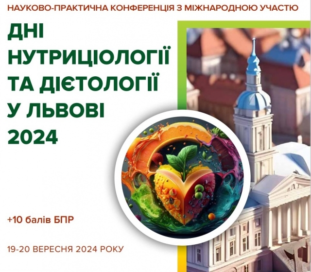 ЗАПРОШУЄМО ВАС ВЗЯТИ УЧАСТЬ У НАУКОВО-ПРАКТИЧНІЙ КОНФЕРЕНЦІЇ З МІЖНАРОДНОЮ УЧАСТЮ «ДНІ НУТРИЦІОЛОГІЇ ТА ДІЄТОЛОГІЇ У ЛЬВОВІ 2024»