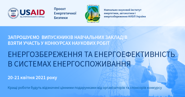 Запрошуємо випускників навчальних закладів взяти участь у конкурсах наукових робіт "Енергозбереження та енергоефективність в системах енергоспоживання"