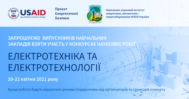 Запрошуємо випускників навчальних закладів взяти участь у конкурсах наукових робіт «Електротехніка та електротехнології»