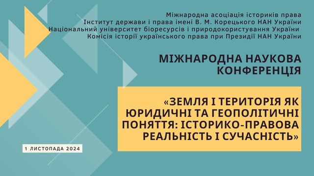 Запрошуємо взяти участь у Міжнародній наукової конференції «Земля і територія як юридичні та геополітичні поняття: історико-правова реальність і сучасність»