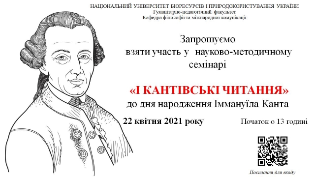 Запрошуємо взяти участь у науково-методичному семінарі «І КАНТІВСЬКІ ЧИТАННЯ» (22 квітня 2021 р.) Інформаційний лист 12 квітня 2021 року 03:00 - 03:00