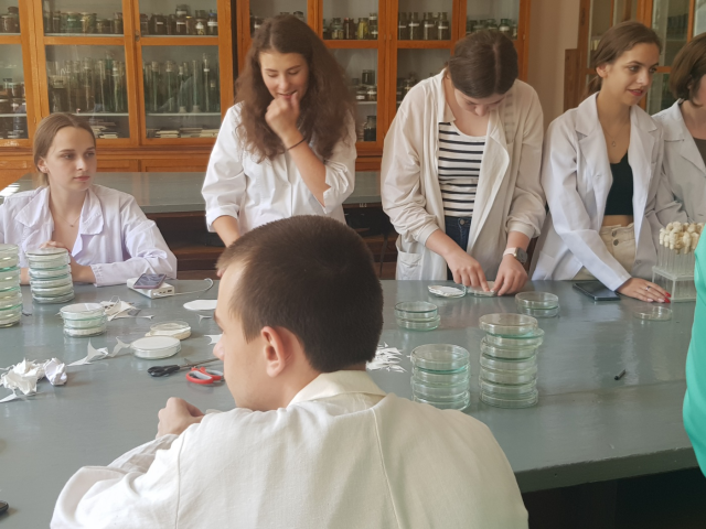 Сьогодні було проведено засідання гуртка "Загальна мікологія". Під час якого гуртківці практично познайомилися з підготовкою посоду для проведення лабораторних досліджень. Студенти з цікавістю готували чашки для вологих камер, пробірки для посіві чистих культур мікроміцетів, які в подальшому будуть ними використан6о для більш глибоких мікологічних досліджень.