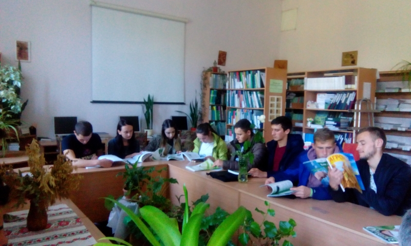 Після узгодження всіх планів роботи наукового студентського гуртка «Селекціонер-генетик» учасники завітали до наукової бібліотеки. Співробітники інформаційно-бібліографічного відділу Лариса Сідько, Людмила Артюх та Світлана Родіонова розповіли присутнім про фонди бібліотеки та інформаційно-бібліографічного відділу. Проінформували про правила користування книжковими фондами та фондами дисертацій і магістерських робіт. Ознайомили з періодичними виданнями, які надходять у відділ і можуть бути корисні для написання їх наукових робіт.