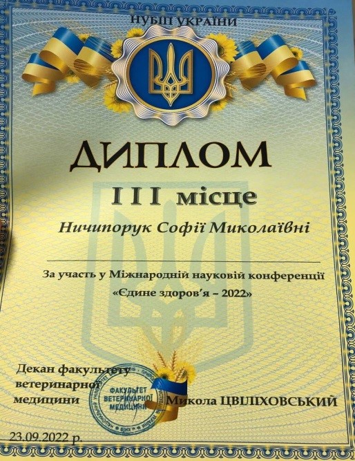 До того ж метою нашого зібрання стало обговорення результатів участі гуртківців у Міжнародній конференції «Єдине здоров’я – 2022», студентів третього курсу Мельниченка Іллі та Ничипорук Софії, які представили свої доповіді на секції «Студентська наука». Окремо слід зазначити призове місце активної учасниці наукового гуртка – Ничипорук Софії, яка отримала відзнаку за наукову доповідь.