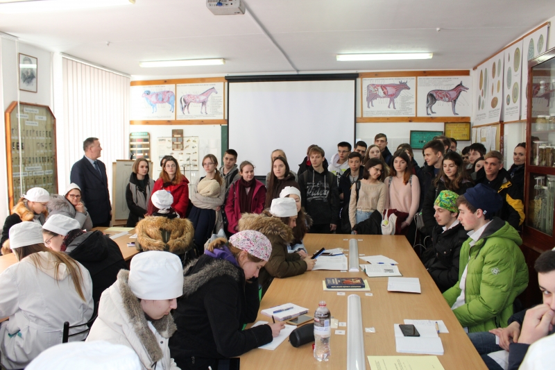 Заступник декана Василь Данілов презентував історію та сьогодення факультету, представив науково-педагогічний колектив кафедр, ознайомив гостей з матеріально-технічною базою. Акцент був зроблений на те, що через півтора роки факультет буде відзначати 100-річну історію. Він також наголошував на тому, що у галузі знань 21 – «Ветеринарна медицина» є дві спеціальності: 211 – «Ветеринарна медицина» та 212 – «Ветеринарна гігієна, санітарія і експертиза». Навчальний план підготовки фахівців ветеринарної медицини адаптований до вимог Міжнародного європейського бюро. Василь Данілов наголосив, що місць для навчання усіх буде достатньо, оскільки на освітній ступінь «Магістр» збільшений ліцензійний обсяг до 350 осіб. Абітурієнти задали ряд запитань, на що отримали вичерпні відповіді.