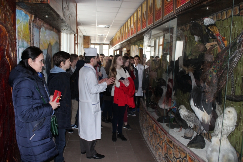 Заступники декана провели екскурсію по факультету і ознайомили абітурієнтів з фундаментальними та клінічними кафедрами. Вони відвідали кафедру паразитології і тропічної ветеринарії, але особливий інтерес викликав у абітурієнтів відвідування кафедри анатомії, гістології і патоморфології тварин ім. акад. В.Г. Касьяненка, де були продемонстровані пластиновані препарати та музей анатомії.