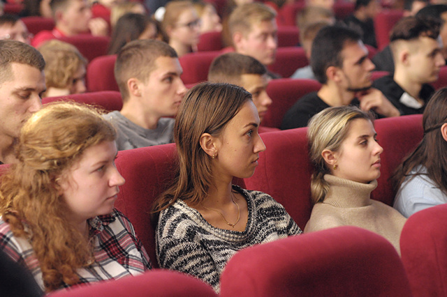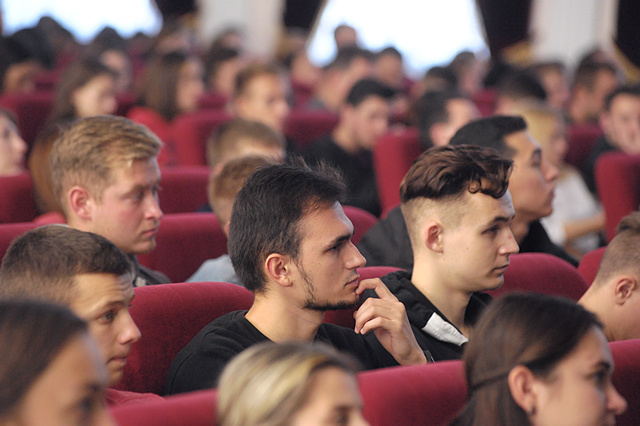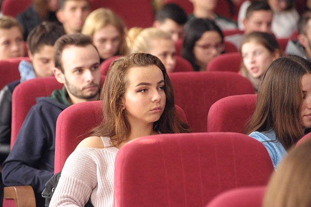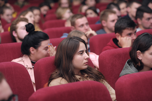 До актової зали завітали студенти випускного курсу бакалаврату 25-ти спеціальностей, які згідно з Умовами прийому на навчання до закладів вищої освіти України в 2020 році (наказ МОН України від 11 жовтня 2019 року № 1285) здаватимуть ЄВІ з іноземної мови для вступу до магістратури за технологією ЗНО. Для того, щоб випускники ефективно використали час на самоорганізацію та підготовку – реєстрація вступників розпочинається вже 06 травня, та отримали вичерпні відповіді на запитання, відповідальний секретар приймальної комісії Лариса Коропець і представники гуманітарно-педагогічного факультету покроково ознайомили зацікавлених із термінами реєстрації та технологією складання іспиту, балами, за якими його оцінюватимуть.