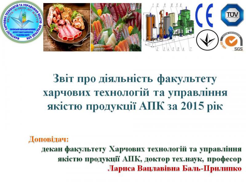 1. Звіт декана -Баль-Прилипко Л.В. про діяльність факультету харчових технологій та управління якістю продукції АПК за 2015 рік.