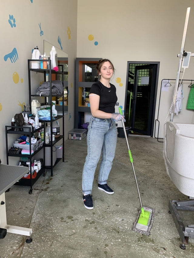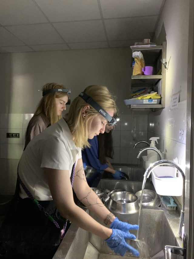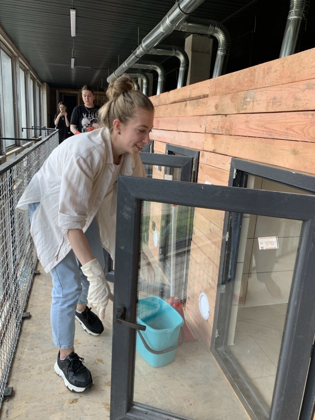Наші дівчата, не зважаючи на відсутність світла, вимили посуд після годівлі тваринок, вимили й підготували для заселення добудовані, нові бокси для тварин, кімнату для грумінгу, вигуляли цуценят, хазяйновиті хлопці вимили підлоги, набрали бутлі питної води. Це саме найменше, що ми можемо зробити, на відміну від фондів, волонтерів, які 24/7 ризикуючи власним життям працюють для тварин, вивозять із зруйнованих, палаючих сіл і містечок ці невинні, кинуті душі, які стали заручниками окупантів.