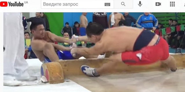 Склад команди – 5 осіб не залежно від статі. Змагання командні. Одночасно змагаються 2 команди. Команди розташовуються навпроти одна одної. Учасники команди сідають на визначене суддями місце (на килим) і ногами спираються в упор (дошка довжиною біля 4 м, висотою приблизно 20-30 см). Між двома командами знаходиться жердина (довжиною біля 4 м, діаметром приблизно 8 см). Учасники обох команд тримають жердину прямими руками довільним хватом. Завдання команди – вирвати жердину з рук суперників або перетягнути суперників на свою половину.
