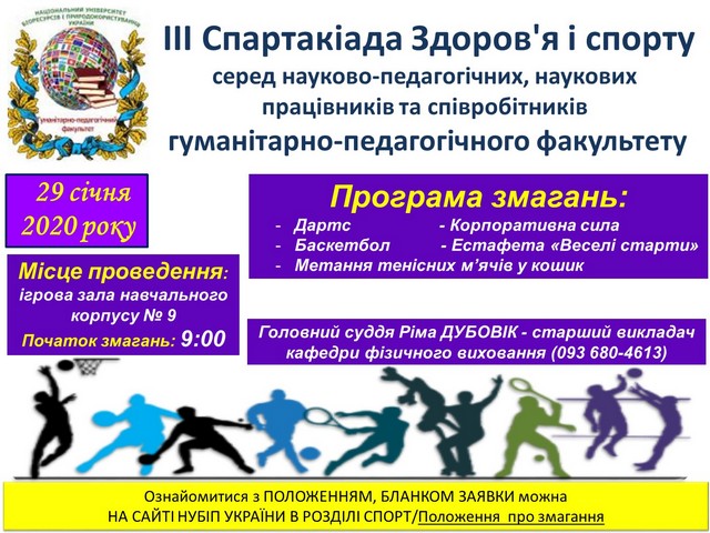 Змагання ІІІ спартакіади здоров’я і спорту серед науково-педагогічних, наукових працівників і співробітників гуманітарно-педагогічного факультету НУБіП України 2020 року