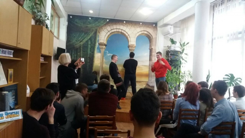 Нещодавнов Державній бібліотеці України для юнацтва студенти 1-2 груп 4-го курсу економічного факультету та магістранти-перекладачі 1-го курсу гуманітарно-педагогічного факультету мали унікальну можливість поспілкуватися з українським скульптором, художником, письменником Русланом Анатолійовичем Найдою.