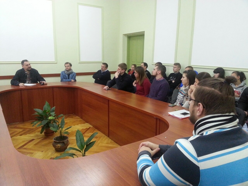 Сергій Саржевський розповів студентам про цінність і важливість роботи перекладачів-синхроністів, поділився власним досвідом, пояснив, що робота перекладача-синхроніста потребує від майбутніх філологів не тільки визначного таланту, нестандартного мислення, а й наполегливої праці.