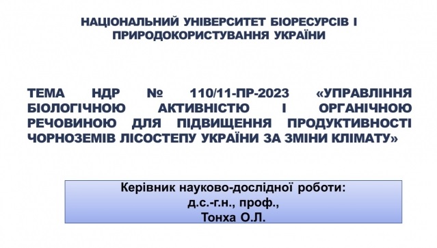 У рамках виконання НДР «Управління біологічною активністю і органічною речовиною для підвищення продуктивності чорноземів Лісостепу України за зміни клімату» (науковий керівник Оксана Тонха), встановлено, що використання біостимуляторів різного складу як ґрунтових, так і за внесення позакоренево (фоліарно) впливає на біогенність та загальну чисельність мікроорганізмів чорнозему типового. Зокрема у верхньому 0–20 см шарі ґрунту вона до 1,3-2,5 разів вища за контрольний варіант (без внесення) особливо на 30-й та 60-й день вирощування горохово-ячмінної суміші.