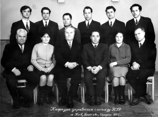 1974 рік: доцент Кобзар Г.О., професор Лещенко Г.Т., ст. лаборант Шевченко Г.І., професор Юрчишин В.В. (зав. кафедри), ст. лаборант Плотнікова Р.Ф., доцент Бідій О.І., в.о. доцента Степаненко М.В., асистент Савчук В.К., лаборант Запорожець Л.Є., ст. викладач Федоренко С.С., доцент Пантелейчук М.М.