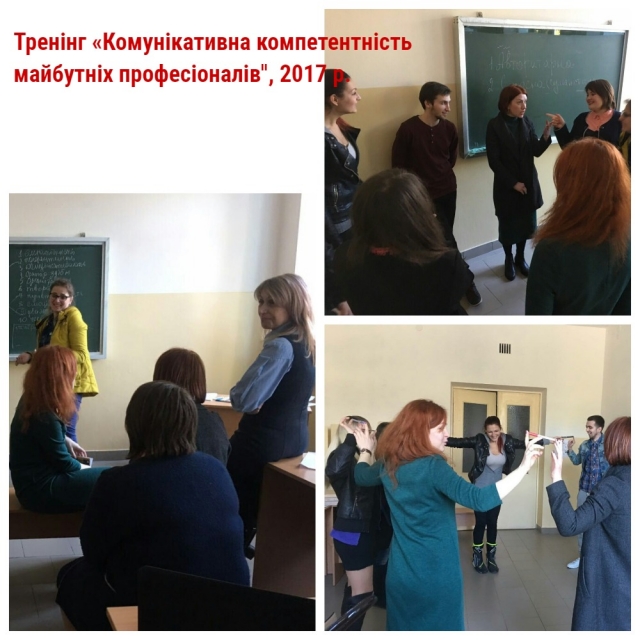 психологічні тренінги: лідерських якостей, креативності, професійно-важливих якостей майбутніх фахівців, командоутворення, впевненості у собі, стресостійкості;