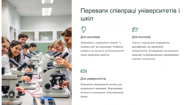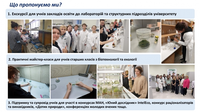 Майстеркласи для школярів Факультет захисту рослин, біотехнологій та екології розпочинає серію практичних майстер-класів для старшокласників! Практичний майстерклас з мікроклонального розмноження на базі кафедри екобіотехнології та біорізноманіття Семінар для вчителів на тему: «Стратегія формування ключових компетентностей учнів на уроках біології та екології» 1 / 1