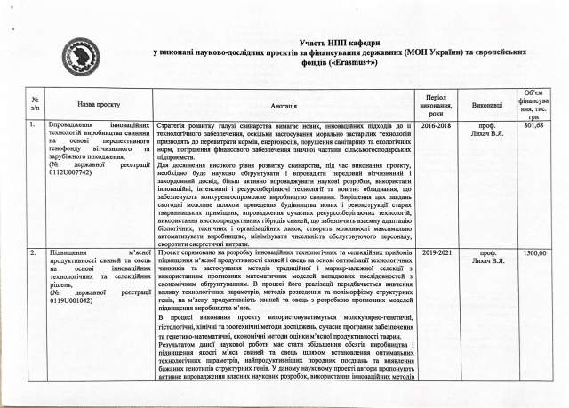 - технологічна оцінка і ефективність використання тварин вітчизняної та зарубіжної селекції перспективних спеціалізованих напрямів продуктивності;