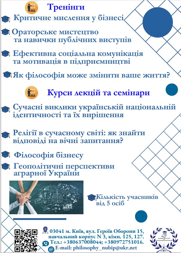 Перелік наукових послуг кафедри філософії та міжнародної комунікації,