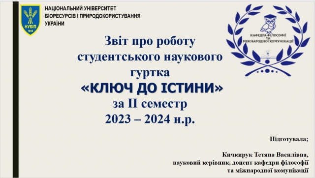 Звіт-презентація по роботі наукового гуртка "Ключ до істини" за ІІ семестр 2023-2024 н.р.